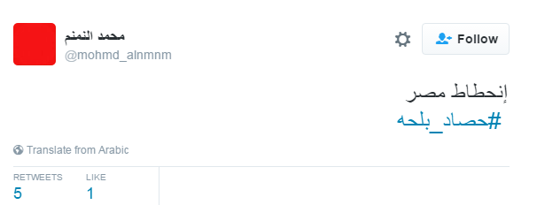 قبل ساعات من نهاية عام 2016م، دشن مغردو موقع التواصل الاجتماعي “تويتر” هاشتاج “#حصاد_بلحة” في إشارة إلى عبدالفتاح السيسي، عبروا فيه عن سخطهم مما آلت إليه البلاد تحت حكمه، وما تبعها من أزمات اقتصادية كبرى لنصر، لافتين إلى أن مصر شهدت ارتفاع كبير في نسبة الفقر والجوع والبطالة في عهد السيسي.