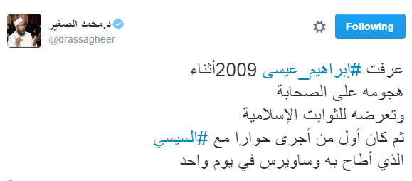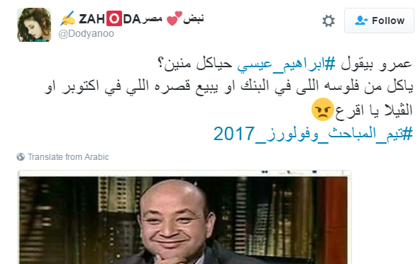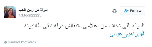 تصدر هاشتاج “#إبراهيم_عيسى” موقع التدوين العالمي “تويتر”، بعد وقف برنامج “مع إبراهيم عيسى” على قناة “القاهرة والناس”، بعد خصومة كبيرة مع مجلس النواب، وهو ما أعلن عنه الإعلامي إبراهيم عيسى، في بيان له، يوم الأحد أول أيام عام 2017م، ليؤكد أن حرية الصحافة والإعلام في خطر وتتراجع من عام إلى آخر.