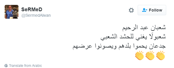 وظهر عبد الرحيم في الفيديو وهو يحمل علم “الحشد الشعبي”:” لو شفت إرهابي خطير هجبله الحشد الشعبي..اسأل عن الحشد الشعبي على طول هتحبهم جدعان يحموا بلدهم ويصونوا عرضهم”.