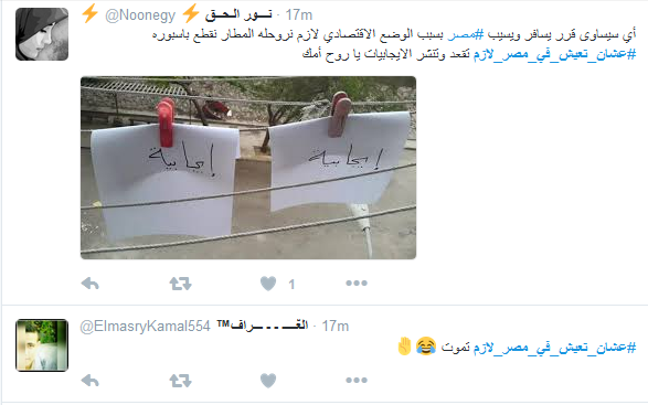 وسم”عشان تعيش في مصر” يتصدر تويتر.. والمغردون: “تبقى مطبلاتي أو حرامي”