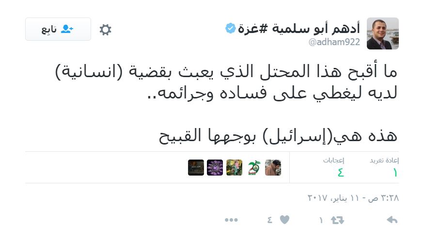 وتابع: “ما أقبح هذا المحتل الذي يعبث بقضية (إنسانية) لديه ليغطي على فساده وجرائمه.. هذه هي(إسرائيل) بوجهها القبيح”.