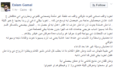 ونقل عن شقيقه قوله: “إن ربنا يعديها على خير الليلة”، مضيفًا ” الجيش بيضحي بالعساكر، أقسم بالله لما يسيبوا شباب خريجي جامعات كده ف الهوا بدون حماية يبقي لمصلحة مين”.