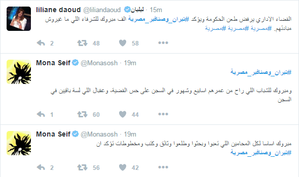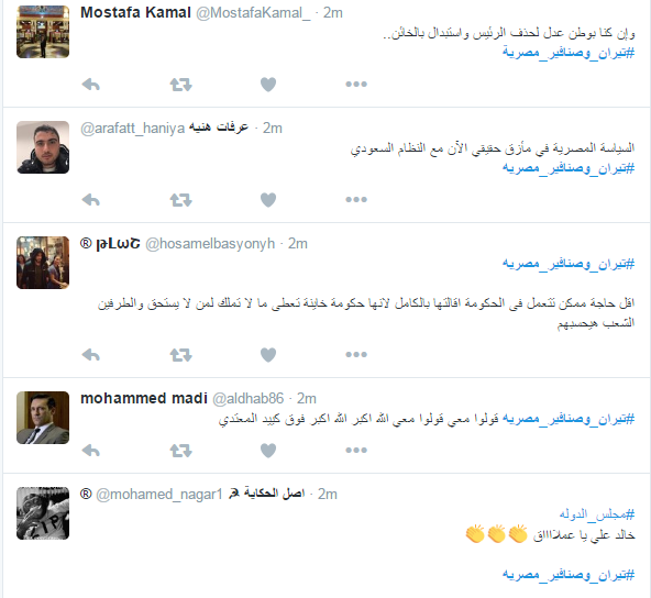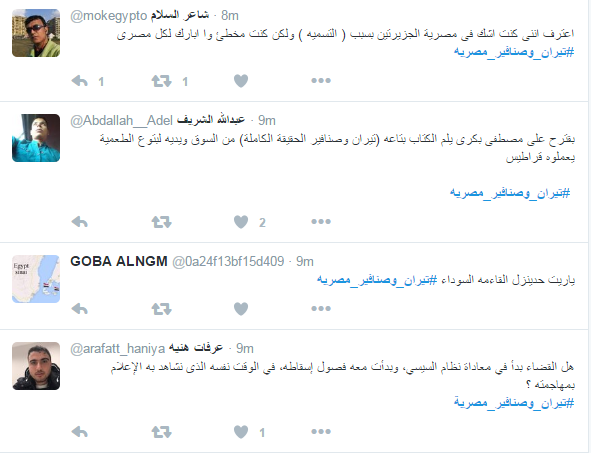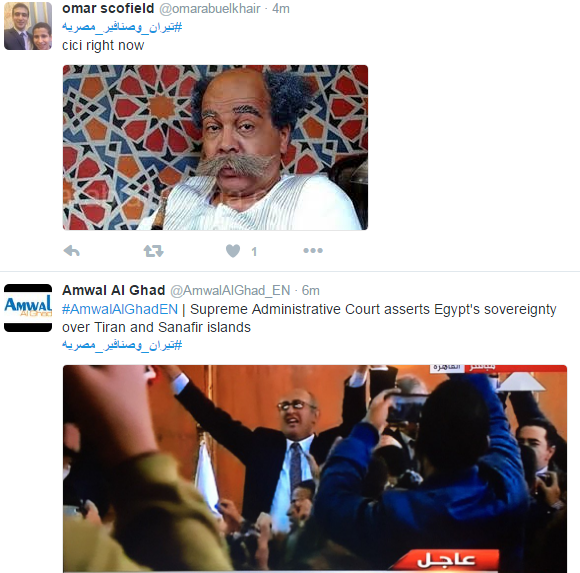 تصدر وسم “تيران وصنافير” مواقع التواصل الاجتماعي؛ احتفاءً بقرار المحكمة الإدارية العليا برفض طعن الحكومة،والتأكيد على أن جزيرتي تيران وصنافير مصريتان.