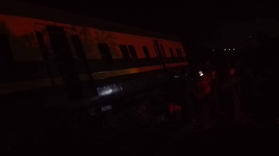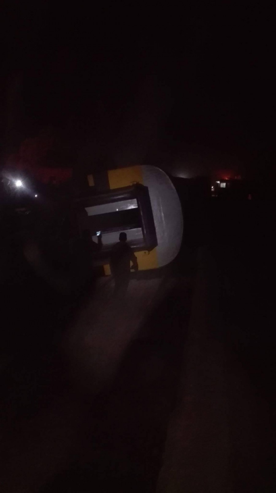 وأسفر الحادثعن إصابات خفيفة للسائق ومعاونه، وتحاول المنطقة الجنوبية للسكة الحديد رفع القطار وإعادته للمسار مرة أخرى.