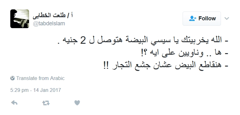وصل سعر البيضة في مصر إلى 1.5جنيه  مع توقعات لوصولها إلى 2 جنيه، مما اثار سخرية مواقع التواصل الاجتماعي.