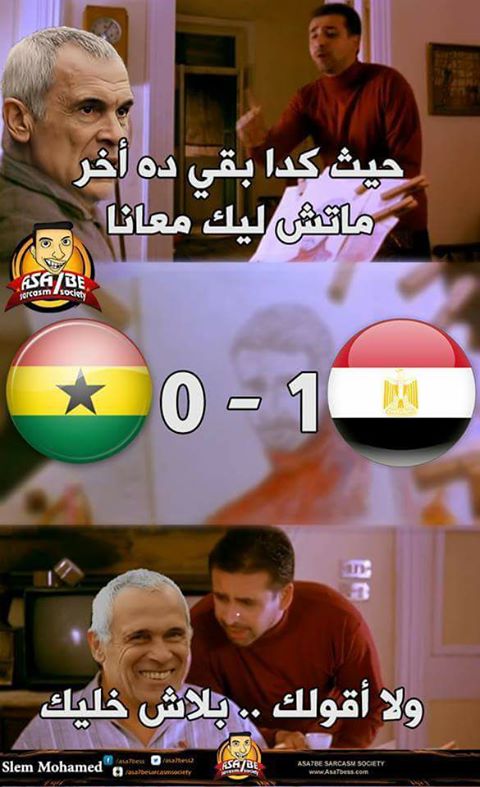 تداول رواد مواقع التواصل الاجتماعي “فيس بوك” و”تويتر”كوميكس ساخر من المباراة التي جمعت بين مصر وغانا، والتي انتهت بفوز الفراعنة بهدف مقابل لاشئ سجله محمد صلاح في الدقيقة العاشرة من الشوط الأول.