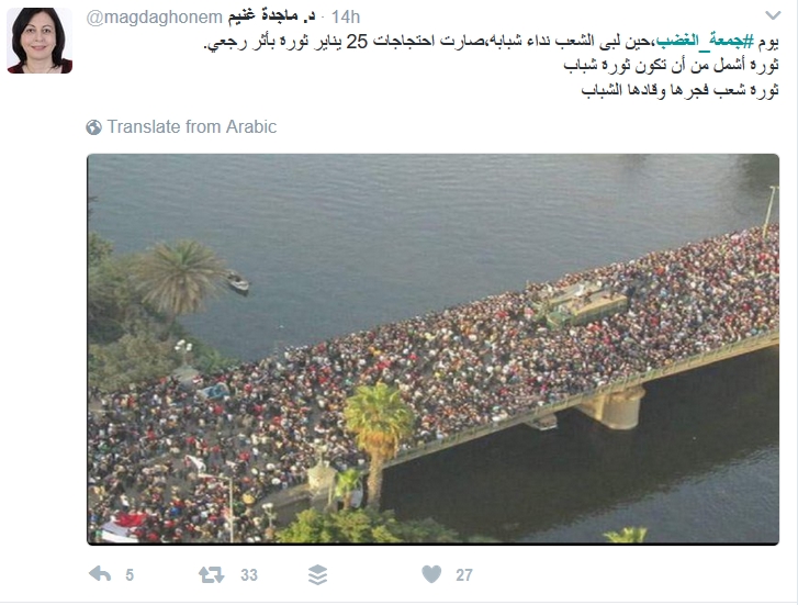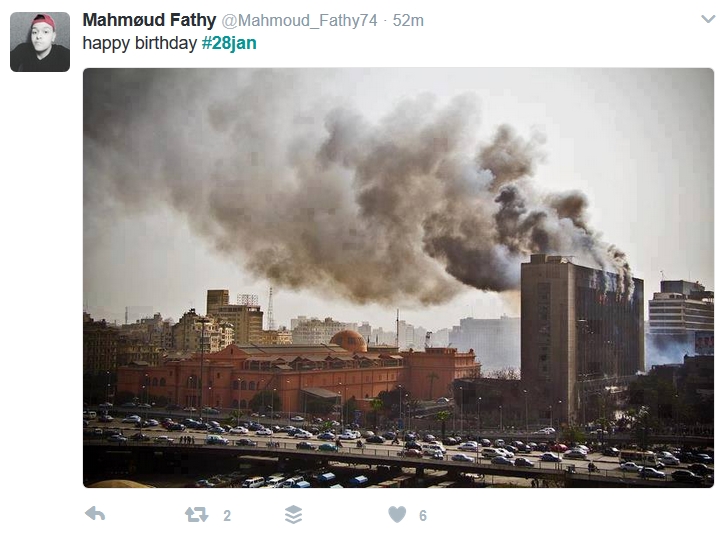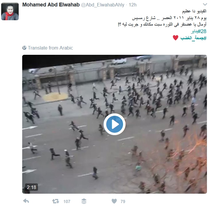 دشن عدد من النشطاء عبر “تويتر”، عدد من الأوسمة بمناسبة الذكرى السادسة لـ” جمعة الغضب”، منها:” 28 يناير” .. “#28jan”.. “جمعه الغضب”.