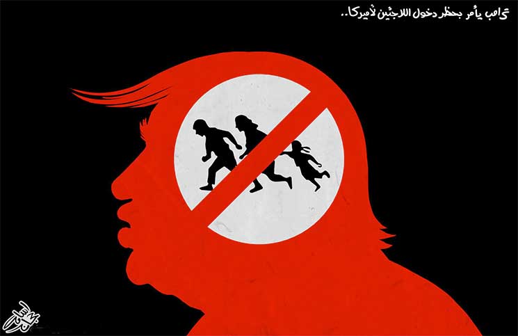 – تناولت “القدس العربي” ازمة حظر دخول اللاجئين من دول مسلمة إلى أميركا.