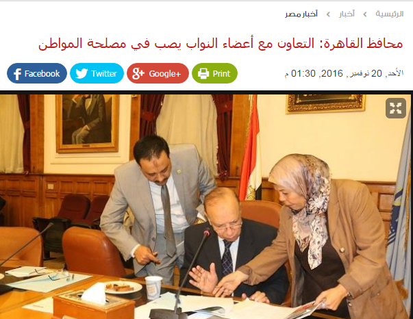 وفي نوفمبر العام الماضي، اعتبر عاطف عبد الحميد، محافظ القاهرة، خلال لقائه الدوري بأعضاء مجلس النواب عن منطقتي الشرقية والشمالية بالقاهرة، أن التعاون مع أعضاء البرلمان والقيادات التنفيذية بالمحافظة للصالح يصب في مصلحة المواطن