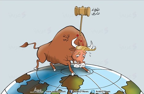 وعبر موقع “عربي 21” عن تصدي القضاء لقرارات “ترامب” بهذا الكاريكاتير..