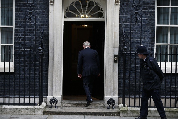 وبشكل يخالف البروتوكولات الدولية، فُتحت البوابة دون أن يظهر أحدٌ لاستقباله؛ ليدخل نتنياهو وحيدًا إلى المقر، ثم تخرج بعدها رئيسة الوزراء البريطانية تيريزا ماي معه لتصافحه أمام الصحافة قبل بدء اللقاء بينهما.