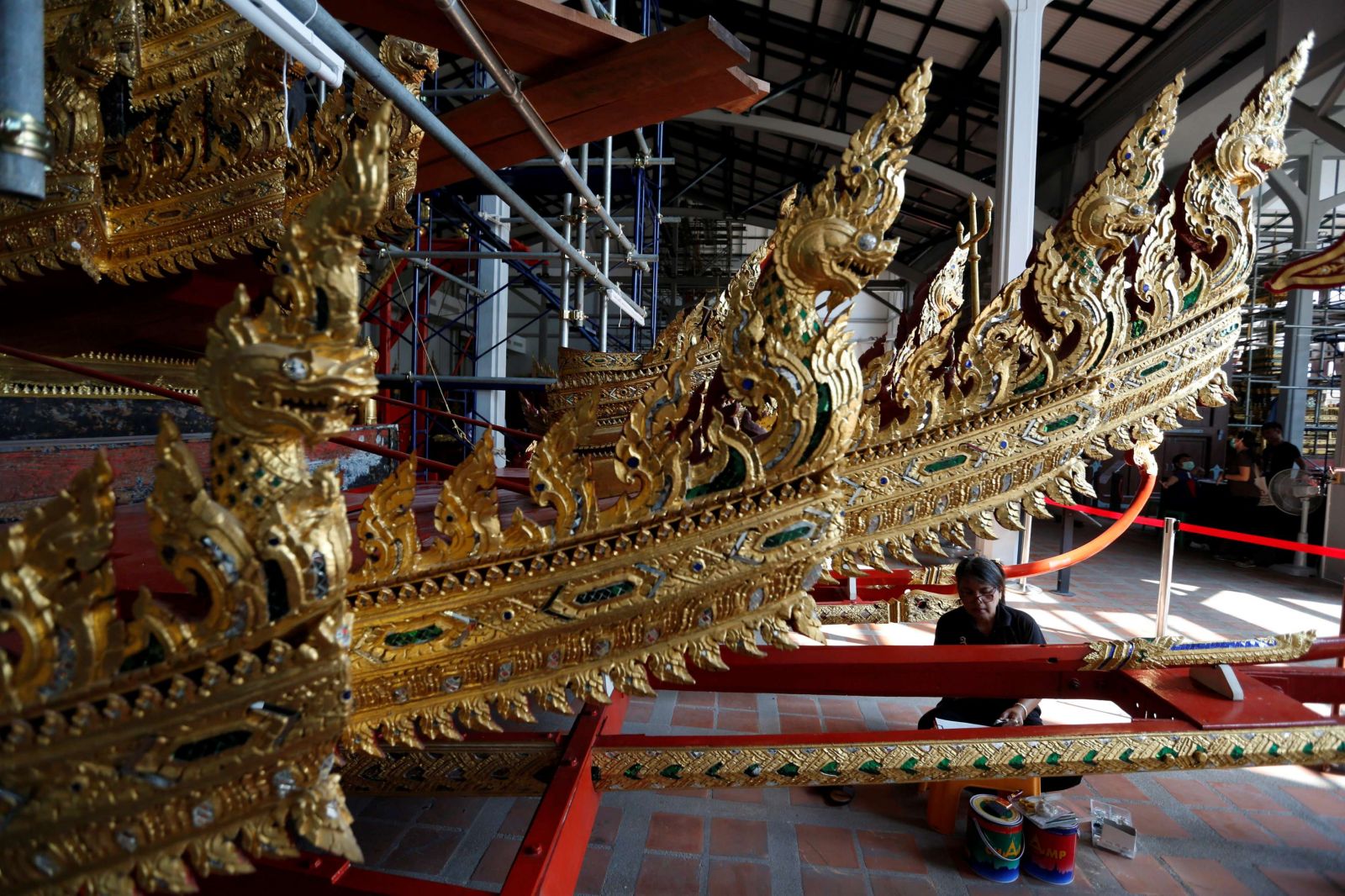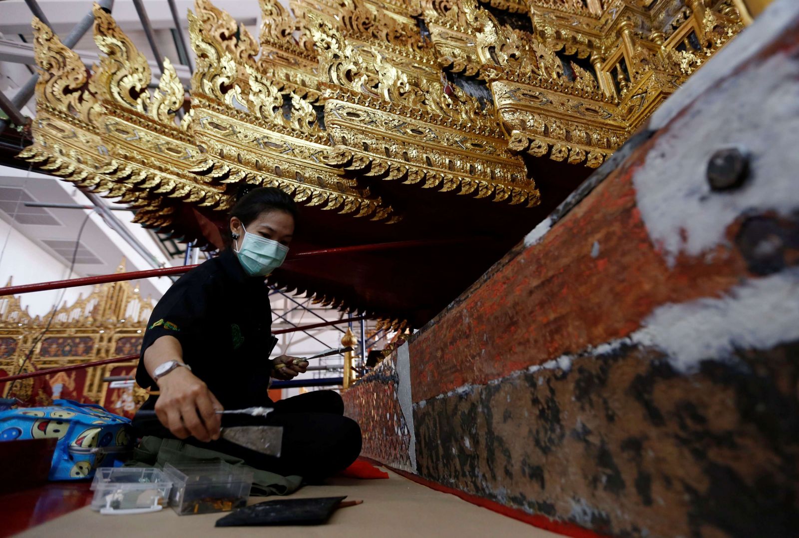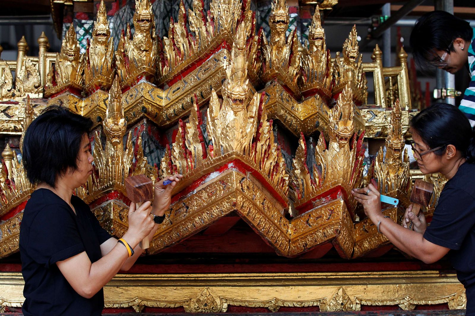 يعكف العمال في بانكوك، على تزيين عربة مذهبة، لتقل ملك تايلاند الراحل في رحلته الاخيرة، اعتقادًا منهم إنها ستوصله إلى الجنة، في مهمة شاقة قد تستغرق شهور.