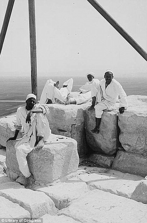 وتظهر مجموعة من الصور الممتازة التقطت في الفترة ما بين عامي 1890 و1930 الفيكتوريين يستمتعون بالنزهة وينامون قيلولة بعد الغداء داخل أحد المعابد المنقوش عليها بالكتابة الهيروغليفية.