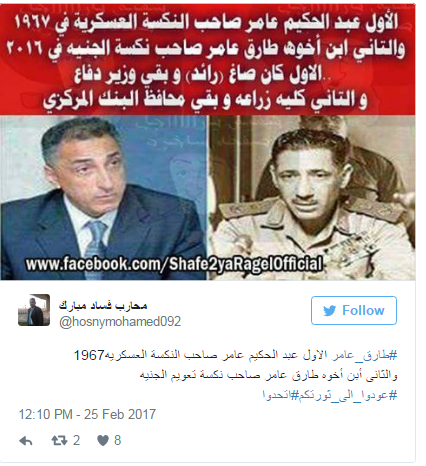 واستقبل رواد مواقع التواصل الاجتماعي تصريح طارق عامر بالسخرية والنقد اللاذع على هاشتاج باسمه أصبح “تريند” في وقت قياسي، وألصقوا تصريحه بمقولة عبد الحكيم عامر صاحب النكسة العسكرية 1967م، عندما قال “ممكن ندخل اسرائيل في نكسة 1967”، ووصفوا عامر بأنه صاحب “نكسة تعويم الجنيه”.