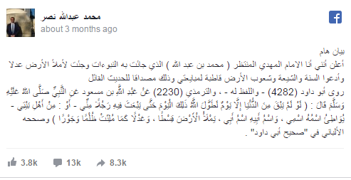 وأثار “الشيخ ميزو” جدلًا واسعًا في الشارع المصري وعبر مواقع التواصل الاجتماعي عندما ادعى أنه “المهدي المنتظر”؛ حيث أعلن في وقت سابق عبر صفحته على موقع التواصل الاجتماعي “فيس بوك” قائلًا: “بيان هام، أعلن أنني أنا الإمام المهدي المنتظر (محمد بن عبدالله) الذي جاءت به النبوءات، وجئت لأملأ الأرض عدلًا وأدعو شعوب الأرض قاطبة لمبايعتي”.