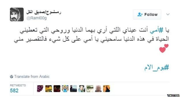 أما هاشتاج “#بكلمتين_لأمك” فظهر في 185 ألف تغريدة، تضمنت أقوالًا وأشعارًا وشكرًا من المغردين لأمهاتهم.