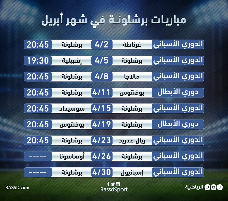يواجه برشلونة وريال مدريد الإسبانيان مباريات في بطولات عديدة خلال شهر أبريل القادم.