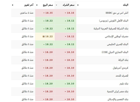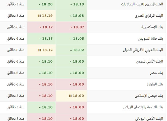 على الجانب الآخر، بلغ أدنى سعر للبيع عن 18.1 جنيه، في 5 بنوك، وهي بنك الأهلي اليوناني، وبنك القاهرة، وبنك مصر، وبنك فيصل، والأهلي المصري.