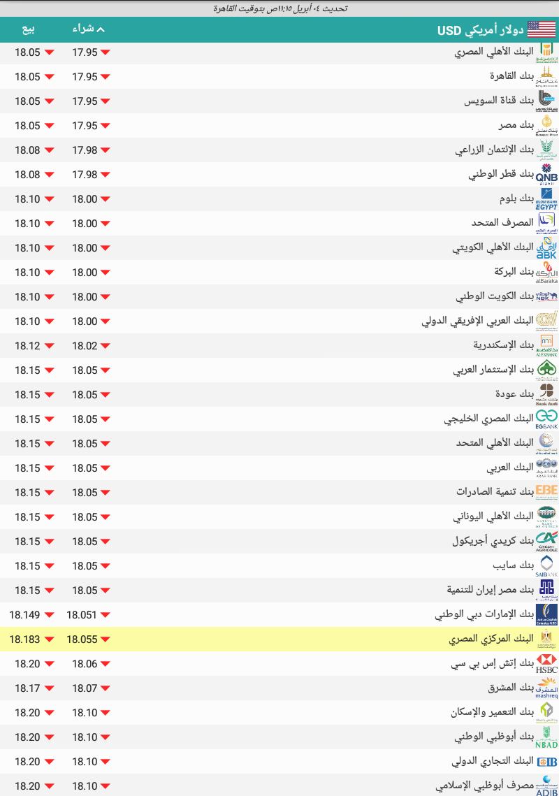 وفيما يلي جدول بأخر أسعار الدولار في البنوك