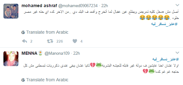 دشّن مغردو موقع التدوين العالمي “تويتر” هاشتاجًا يحمل اسم “#عايز_تسافر_ليه”، تصدّر قائمة الأعلى تداولًا على “تويتر” في مصر.