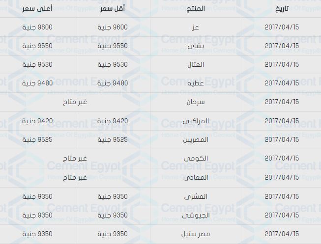 والجدول التالي يوضح آخر تحديث لأسعار طن الحديد بالسوق: