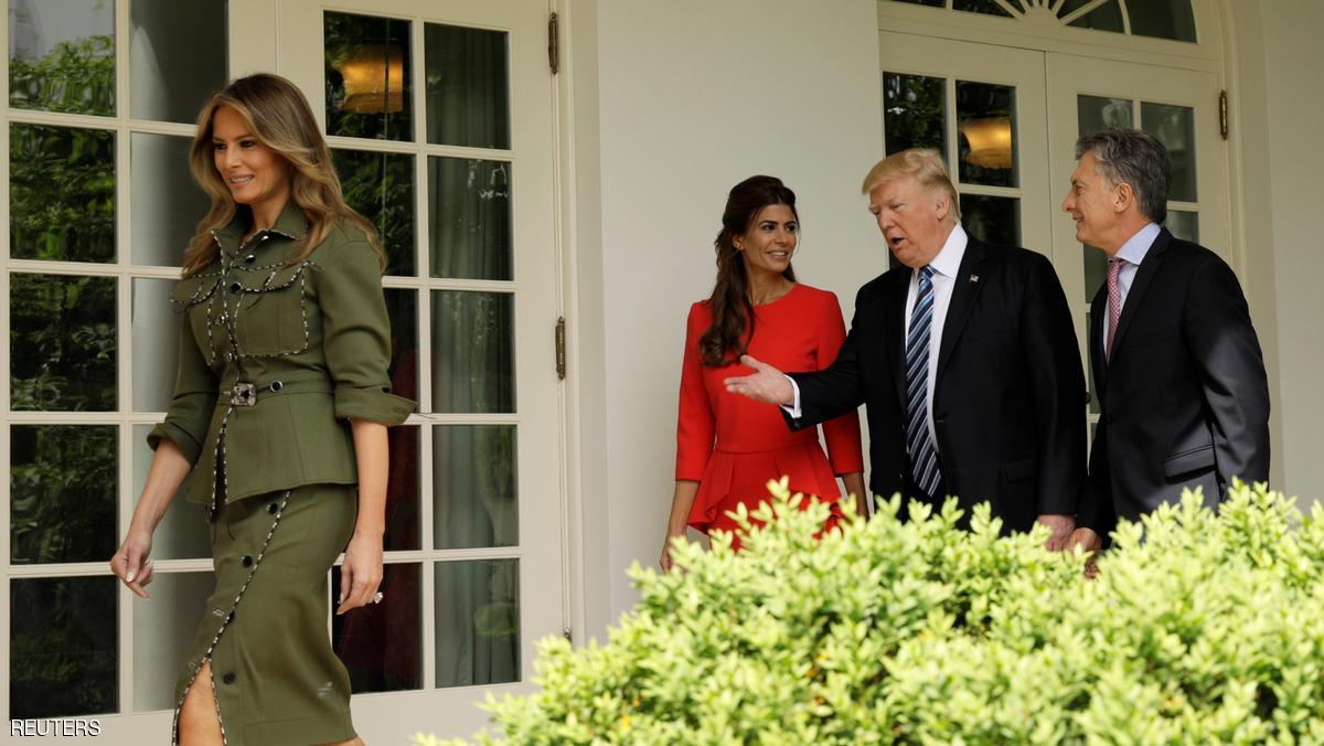 وعقد اللقاء الرسمي في البيت الأبيض، بين الرئيس الأميركي دونالد ترامب، وزوجته، مع الرئيس الأرجنتيني موريسيو ماكري وزوجته جوليانا عواضة.