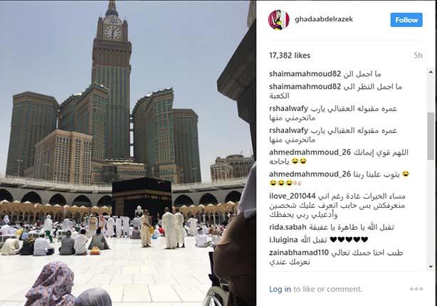 ونشرت غادة صورة من أمام الكعبة بعدما أدت صلاة الجمعة في “الحرم”، كما نشرت صورة أخرى للكعبة، وأيضًا فيديوهين: أحدهما أثناء رفع أذان الجمعة، والآخر من غرفتها بالفندق الذي تقطن فيه.