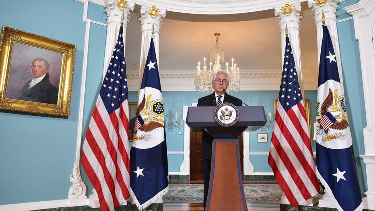 واستمر تيلرسون في نشر الشكوك بشأن التزام أمريكا بالإتفاقية، وفي إجتماع لوزارة الخارجية، عبر عن قلقه من عدم تحقيق الإتفاقية لهدفها بجعل إيران دولة غير نووية، وأن يكون تأثيره مؤقت بحيث تستطيع طهران تطوير برنامجها النووي بعد سنوات.