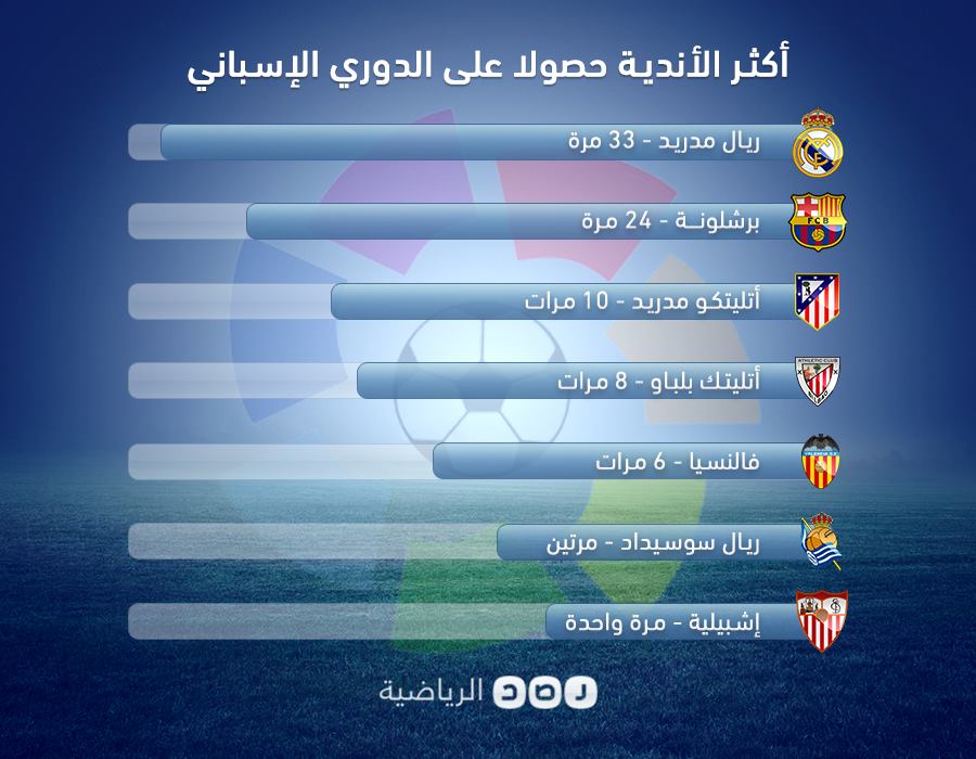 في هذا الإنفوجراف، أعددنا لكم قائمة بأكثر الأندية حصولًا على الدوري الإسباني: