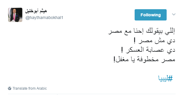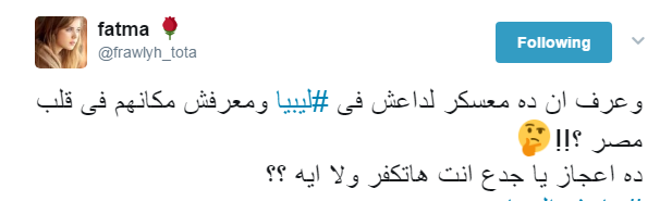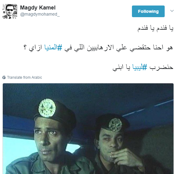 وسخر مغردو “تويتر”، عبر هاشتاج “#ليبيا” الذي تصدّر قائمة الأعلى تداولًا في مصر بعد دقائق، من إعلان توجيه الضربات الجوية إلى درنة، معتبرين أن السيسي فشل في القبض على مرتكبي أحداث العنف في محافظة المنيا فتوجّه إلى ليبيا للتغطية على فشله.