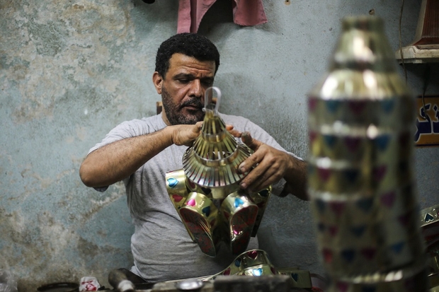 يشتكي مصطفى، والد ثلاثة أطفال، من ارتفاع معدل التضخم في مصر، وتأثيره على عمله في صناعة الفوانيس.