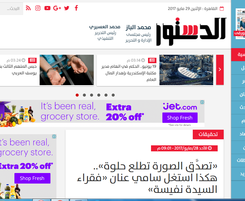 صحيفة “الدستور”، المقربة من السلطات، اتهمت عنان باستغلال فقراء السيدة نفيسة، ساخرة من ظهوره هناك.