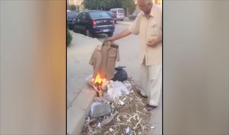 أظهر مقطع فيديو نشره ناشطون على الإنترنت عسكريًا مصريًا متقاعدًا يحرق زيّه؛ احتجاجًا على تنازل النظام عن جزيرتي تيران وصنافير للسعودية.