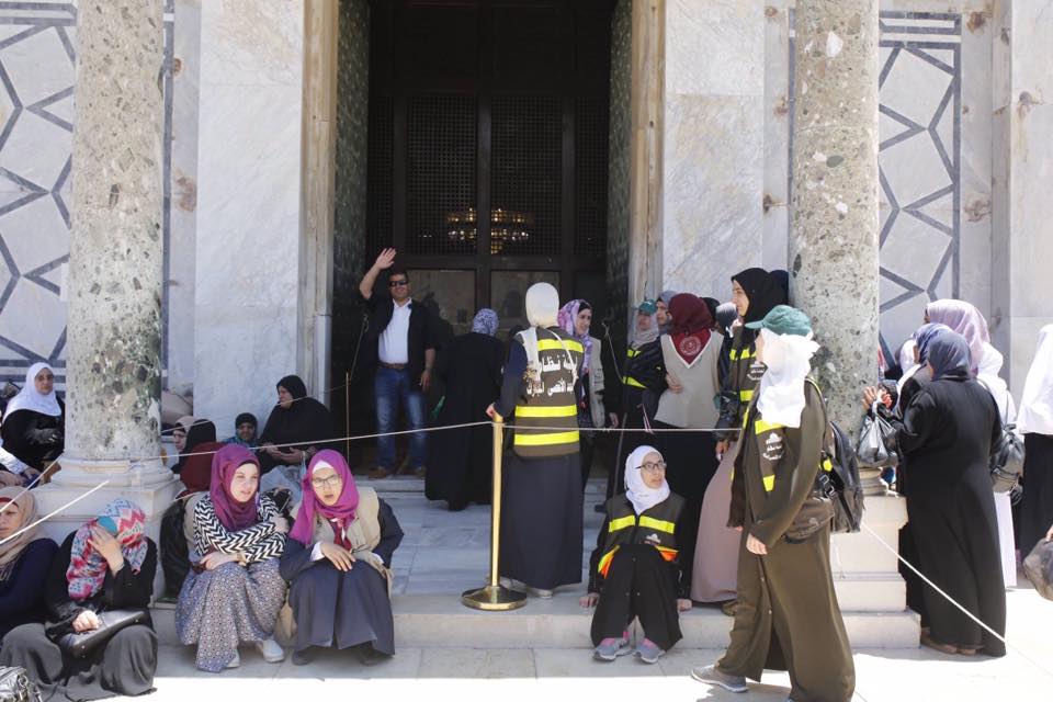 وكانت فرق الكشافة ولجان النظام عاونت منذ ساعات الصباح حراس وسدنة المسجد الأقصى في ترتيب الأمور في ساحات المسجد وارشاد المصلين.