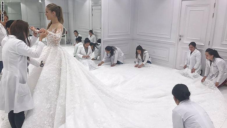 وأوضح سينكو أن الفستان استغرقت خياطته 5 أشهر، حيث عمل عليه أكثر من 100 حرفي، منهم 80 مطرز خرز وستة خياطين و20 شخصًا آخرين، كانت مهمتهم متابعة التفاصيل وإضافة اللمسات الأخيرة.