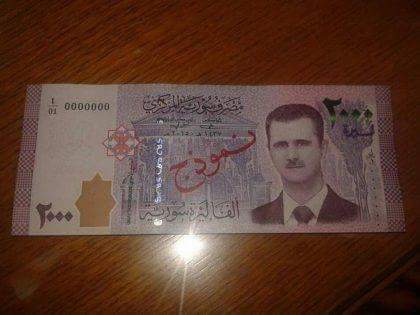 أعلن دريد درغام، حاكم مصرف سوريا المركزي طرح عملة من فئة الألفي ليرة بصورة بشار الأسد بدءًا من صباح اليوم بدعوى سرعة التداولات الورقية وتلفها، والتي كان أعلى فئة لها 1000 ليرة تحمل صورة الرئيس الراحل حافظ الأسد.