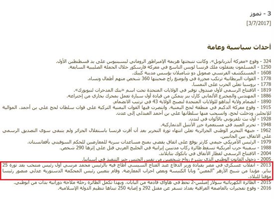 فاجأت وكالة الأنباء الأردنية «بترا» مطالعيها في أجندة الأحداث التي وقعت في مثل هذا اليوم من الأعوام الماضية بوصف ما جرى في مصر في الثالث من يوليو 2013 بانقلاب عسكري نفذه وزير الدفاع المصري عبد الفتاح السيسي.