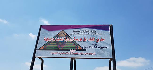 بدأت محافظة البحيرة في إنشاء أول بورصة سلعية للخضار والفاكهة في مصر تحت إشراف المخابرات العامة بتكلفة 850 مليون جنيه.