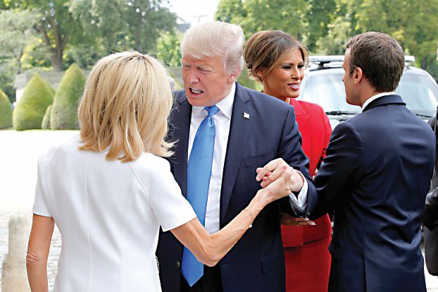 وفي أحدث إطلالة له، أثار «ترامب» الجدل بملاحظاته وطريقة تعامله مع سيدة فرنسا الأولى «بريجيت ماكرون» وهو في ضيافة الرئيس الفرنسي في مجمع «ليز أنفاليد» أثناء الزيارة الرسمية إلى باريس.