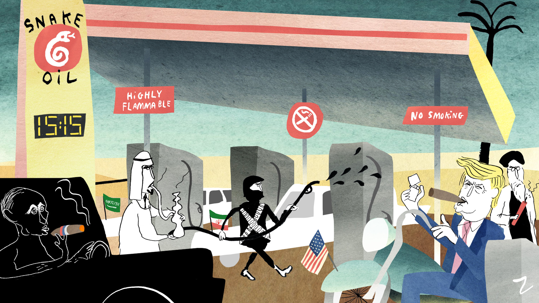 ما يزيد الوضع سوءًا هو تغريدات الرئيس الأميركي وتحريضه للسنة السعوديين ضد الإيرانيين، الذين يحظون بدعم الرئيس الروسي، الذي لا يستطيع تقييدهم. ورغم ذلك، لا تحتاج الأطراف الداخلية وضعف المنطقة إلى أطراف خارجية لاشتعال الموقف.