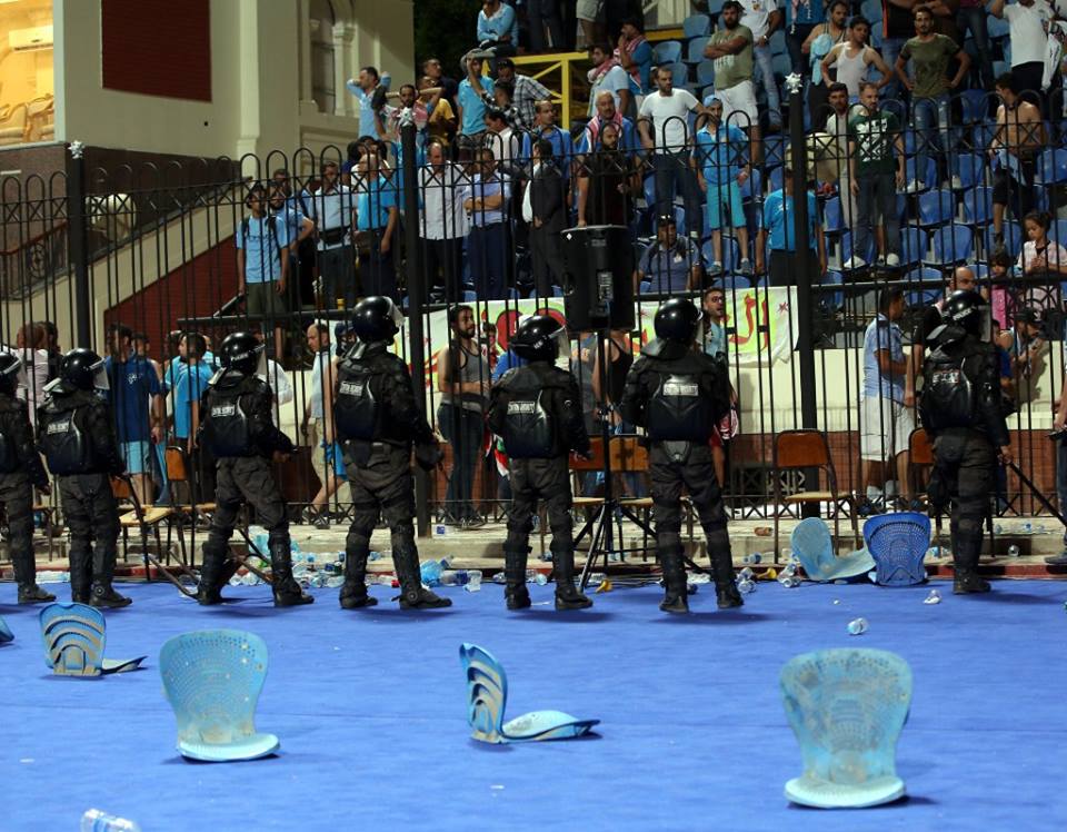 ملعب الإسكندرية بالأمس أثناء شغب جمهور الفيصلي الأردني