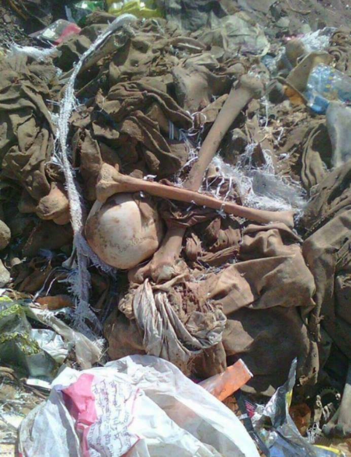 وتعتبر هذه المرة الثانية التي يُعثر فيها على أشلاء بشرية؛ فمنذ 15 يومًا عُثر على 14 جوالًا للجماجم وهياكل وعظام بشرية بالمنطقة نفسها لـ27 جثة.