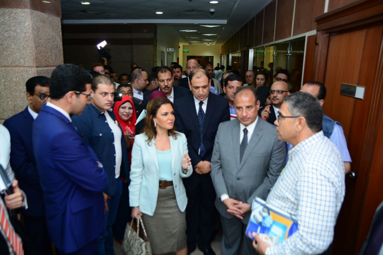 سحر نصر وزيرة الاستثمار وحولها عدد من المسئولين