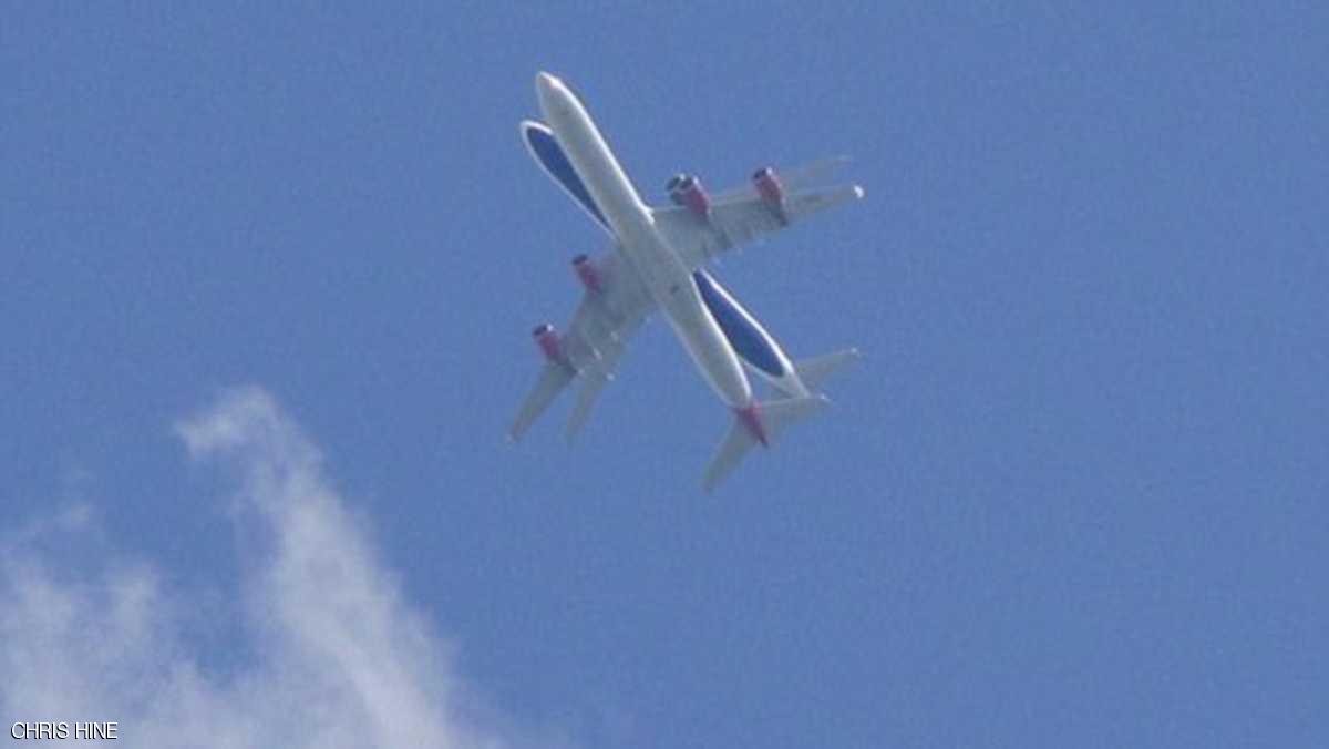 وكشفت صحيفة «ديلي ميل البريطانية» حقيقة هذه الصورة وتفسيرها، التي التقطها المهندس المتقاعد كريس هاين، الذي اعتاد مشاهدة هبوط الطائرت لمطار هيثرو في العاصمة البريطانية لندن من حديقة منزله.
