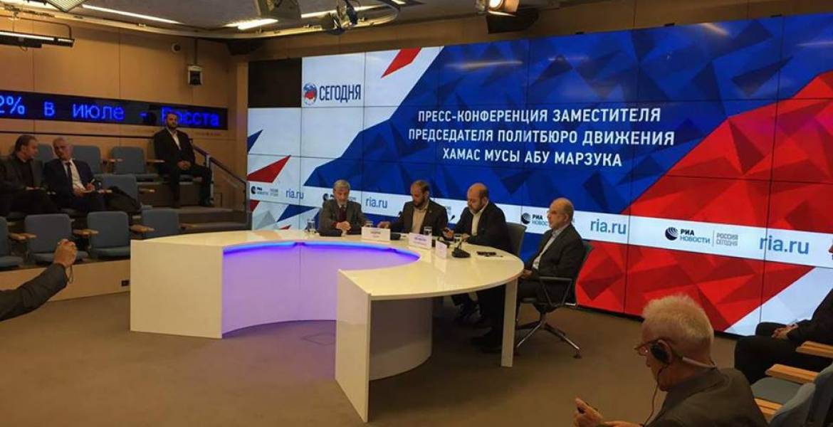 وقالت «حماس» في بيان لها، إن «الوفد الذي ترأسه نائب رئيس المكتب السياسي للحركة موسى أبو مرزوق وعضوية أعضاء المكتب السياسي صالح العاروري وحسام بدران وسامي خاطر ومحمد صوالحة وممثل حركة حماس لدى روسيا، بالسيد ميخائيل بوغدانوف مبعوث الرئيس بوتين للشرق الأوسط وأفريقيا نائب وزير الخارجية الروسي، والمسؤولين في وزارة الخارجية السيد ألكسندر نيكلايفوتش روداكوف والسيدة فيكتوريا ستيغنيي».