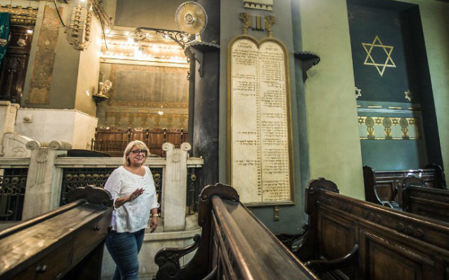 ماجدة هارون رئيسة الجماعة اليهودية في مصر أثناء مقابلة مع وكالة فرانس برس في معبد الإسماعيلية أو معبد عدلي في وسط مدينة القاهرة 2016