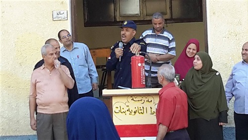 التدريب على استخدام طفايات الحريق بمدرسة منفلوط الثانوية بنات