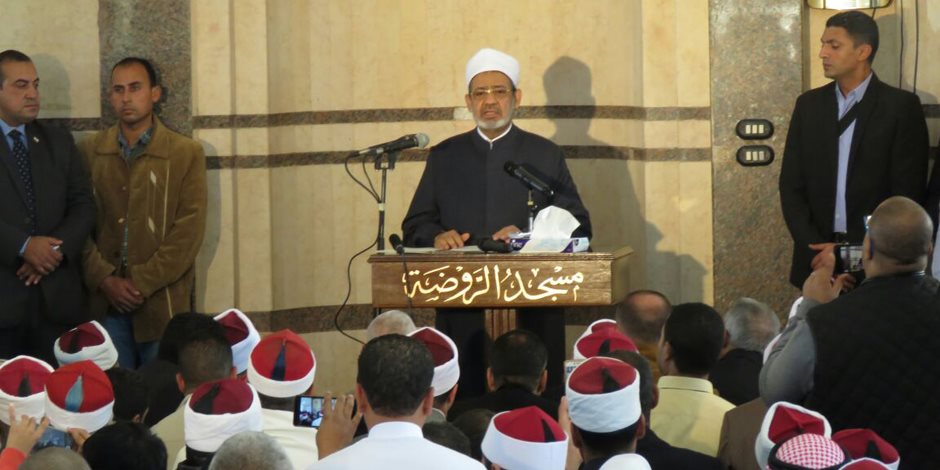 شيخ الأزهر أثناء كلمته في مسجد الروضة