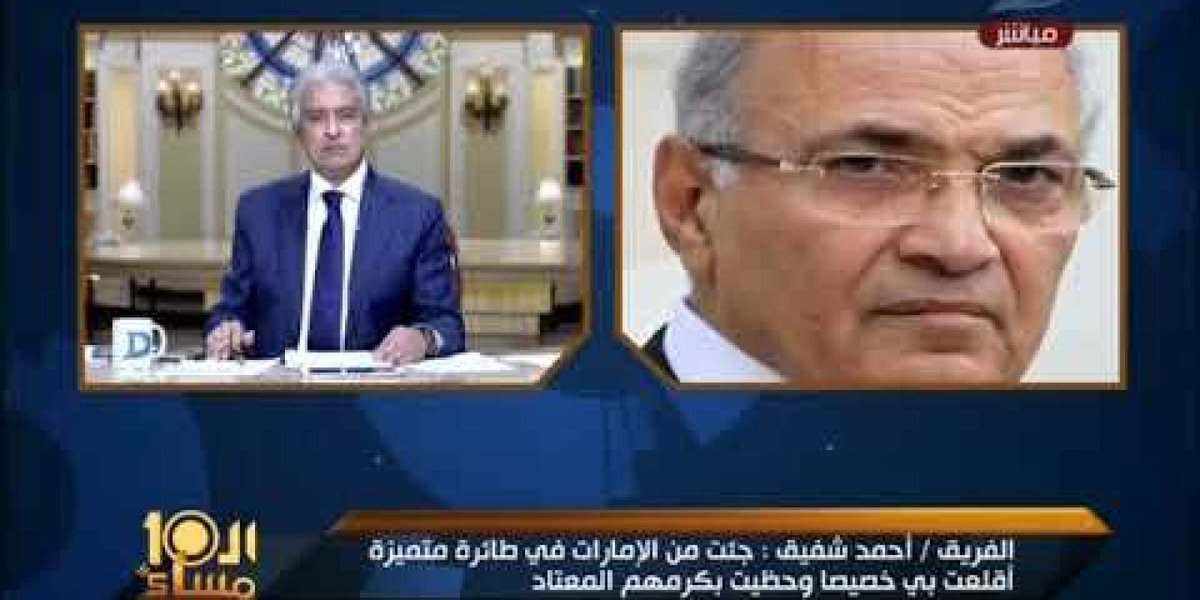نفى الفريق أحمد شفيق، رئيس الوزراء الأسبق، إلقاء القبض عليه في الإمارات وترحيله إلى مصر، وقال: «علينا أن نتمهل شوية في التصريحات، والطيارة أقلعت خصيصًا لمشواري، وكانوا كرماء معي في كل خطوة اتعملت من ساعة ما ركبت السيارة وحتى إقلاع الطيارة».