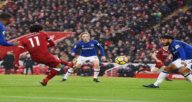 لحظة تسجيل محمد صلاح هدفًا في مرمى إيفرتون